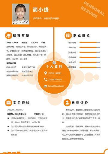 醒目的色彩,强烈的视觉冲击力,可以给招聘者留下深刻的印象,从而增加求职的成功几率。全元素可变的Word文档,修改方便,打印清晰。