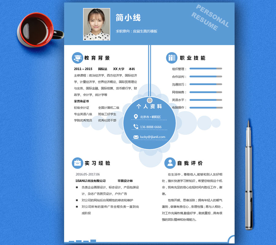 所下载的简历模板均可以全元素修改,编辑。全元素是指模板的所有内容,如文字、标题、图标、背景色、照片等等,这些均可以做添加、删除、复制、修改、替换等动作。