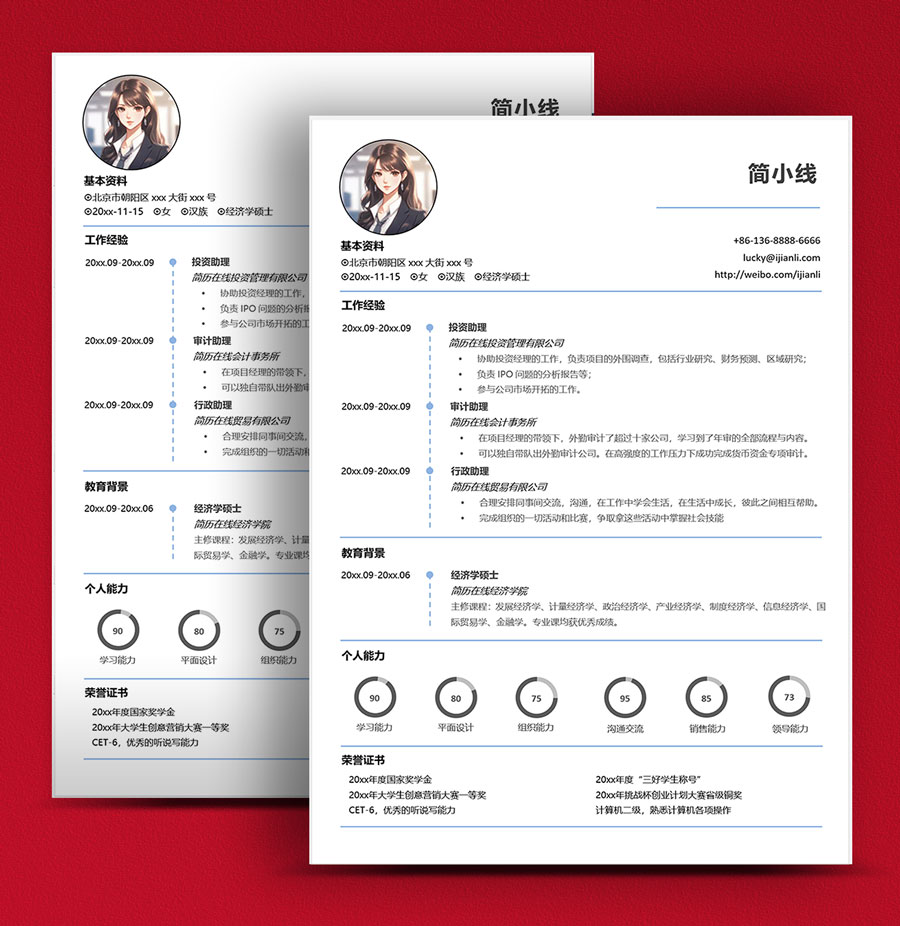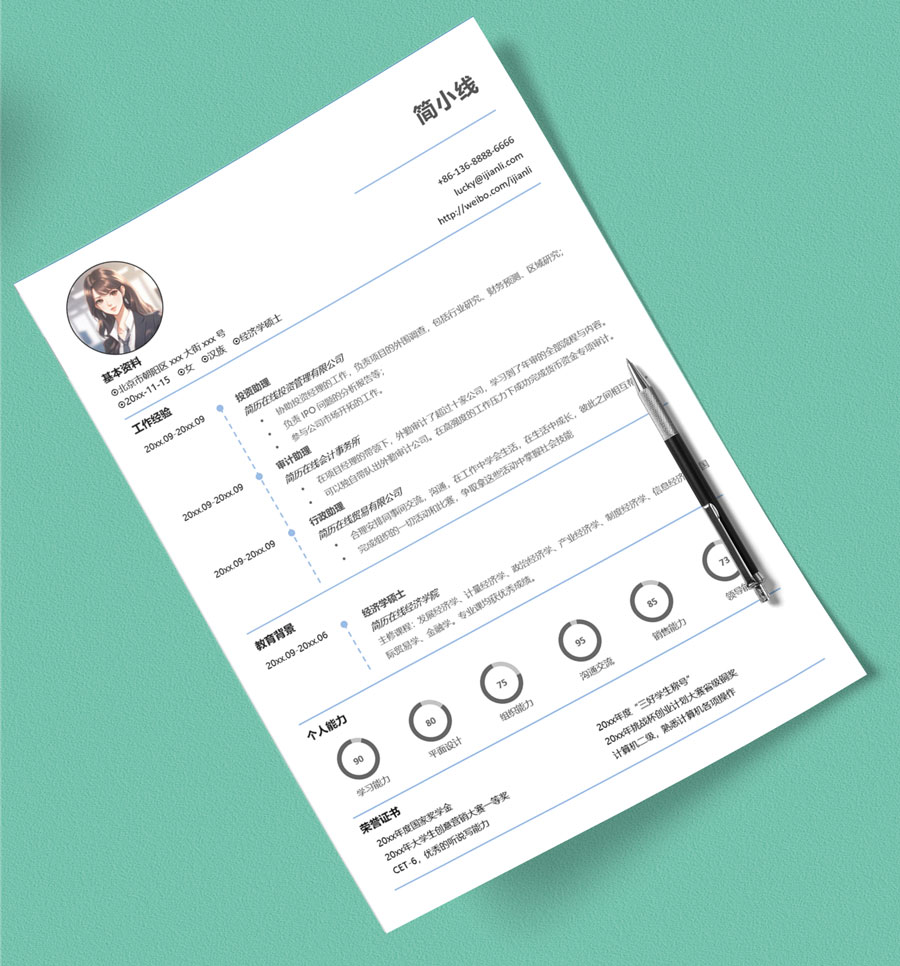 - 所有的简历模板都是Word格式的文件,.doc/.docx后缀名。